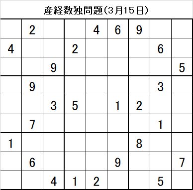 数独問題と回答(産経新聞2020年3月22日掲載分)