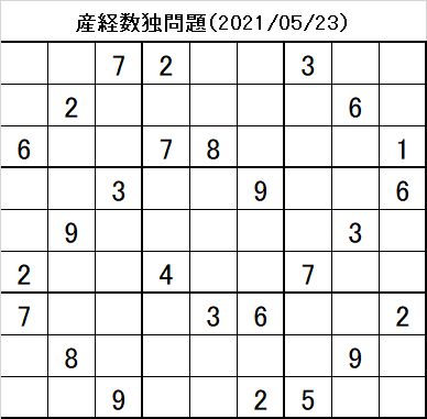 数独問題と回答(産経新聞2021年5月16日掲載分)
