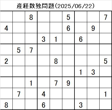 毎週、産経新聞に掲載される数独問題は初心者用になっているようですので