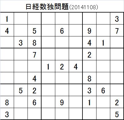 11月16日の産経新聞に掲載された数独問題の回答ですよ。