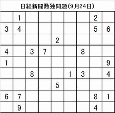 数独問題と回答(産経新聞2016年9月25日掲載分)