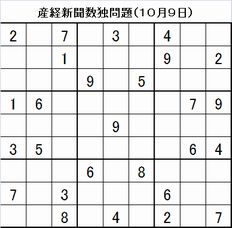 今回、日経新聞2016年10月8日に掲載された数独問題は
