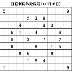 今回、日経新聞2016年10月15日に掲載された数独問題は