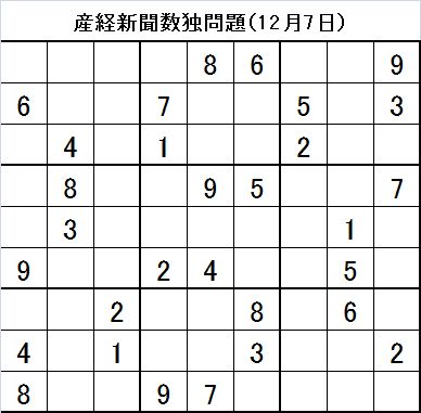数独回答ブログ! 産経新聞12月7日掲載分です!!
