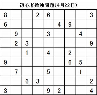 産経新聞に掲載の数独問題は、初心者向けですので