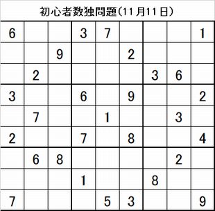 数独問題と回答(産経新聞2018年11月18日掲載分)