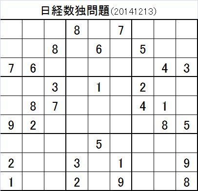 12月21日の産経新聞に掲載された数独問題の回答ですよ。