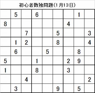 数独問題と回答(産経新聞2019年1月13日掲載分)