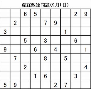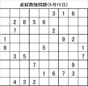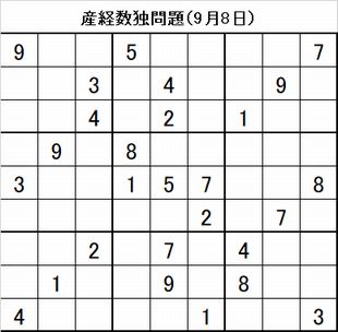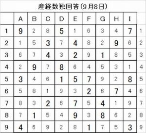 数独問題と回答(産経新聞2019年9月8日掲載分)