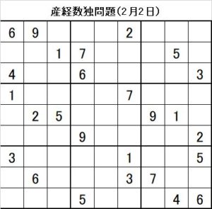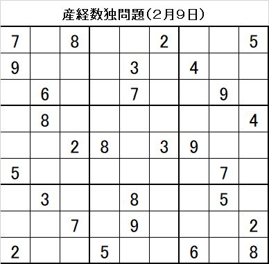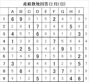 数独問題と回答(産経新聞2020年2月2日掲載分)