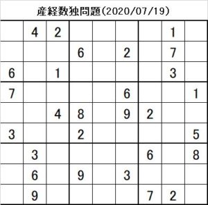 数独問題と回答(産経新聞2020年7月19日掲載分)
