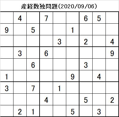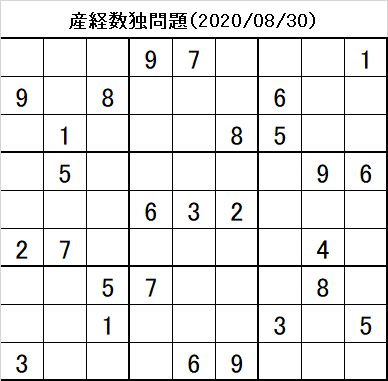 数独問題と回答(産経新聞2020年8月30日掲載分)