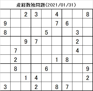 数独問題と回答(産経新聞2021年1月31日掲載分)