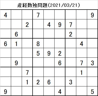 産経新聞に掲載の数独問題は、初心者向けですので