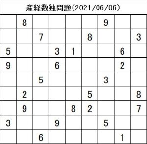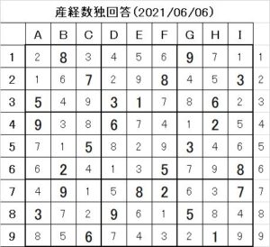 数独問題と回答(産経新聞2021年6月6日掲載分)
