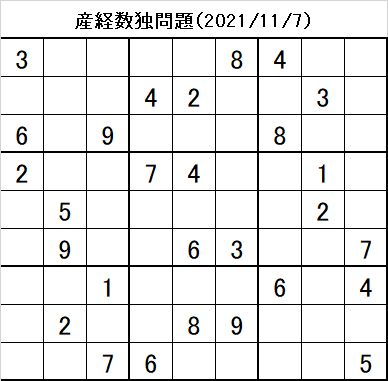 産経新聞に掲載の数独問題は、初心者向けですので