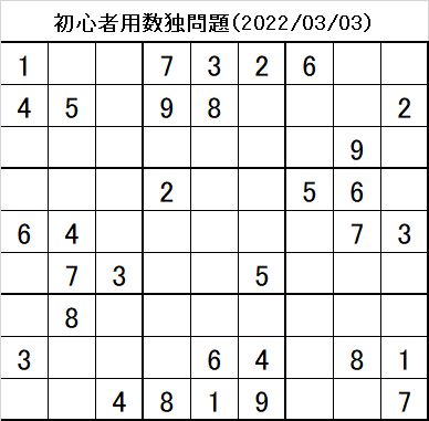 ⇒ 数独問題と回答(産経新聞2022年2月27日掲載分)