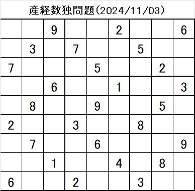 産経新聞に掲載されている数独問題は、初心者向けですので