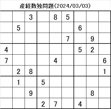 産経新聞に掲載されている数独問題は、初心者向けですので