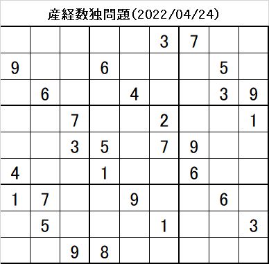 産経新聞に掲載されている数独問題は、初心者向けですので