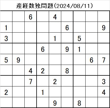 日曜日の産経新聞に掲載された数独問題!!