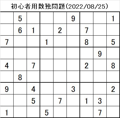 初心者用数独問題と回答(2022年8月25日)