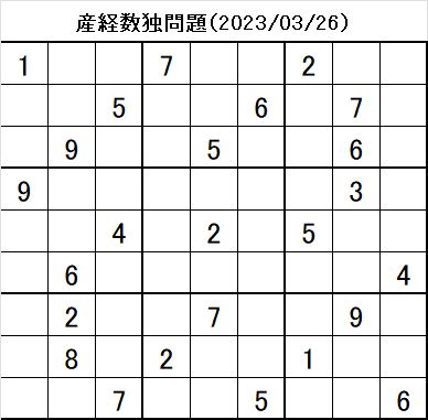 ヘッダーの「お問い合わせ」右隣にある「数独の解き方」をクリック頂き、「ご依頼の詳細回答手順解説(産経新聞2023年3月26日掲載分)」より、ご覧いただけますので、よろしくお願いします。