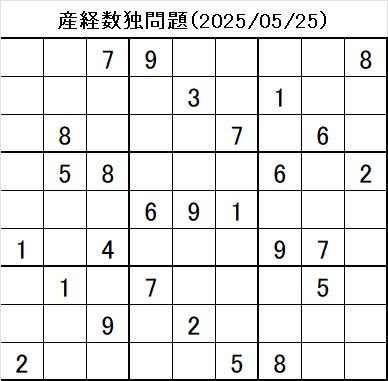 毎週、産経新聞に掲載される数独問題は初心者用になっているようですので