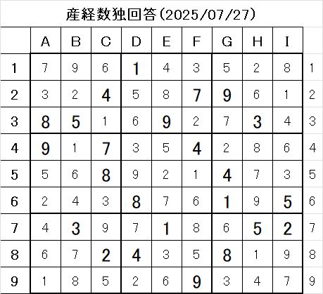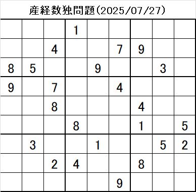 毎週、産経新聞に掲載される数独問題は初心者用になっているようですので