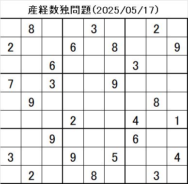 毎週、産経新聞に掲載される数独問題は初心者用になっているようですので