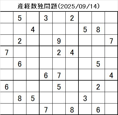 毎週、産経新聞に掲載される数独問題は初心者用になっているようですので