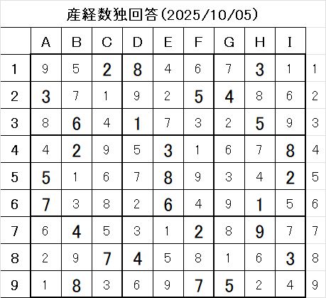 本日の数独問題に対する答え!!