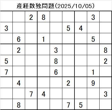 本日の数独問題は・・・