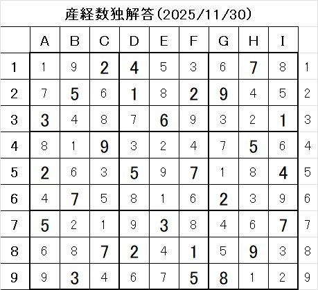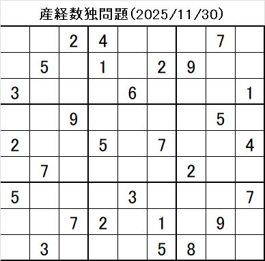 - 問題画像:産経新聞 数独 2025/11/30 問題