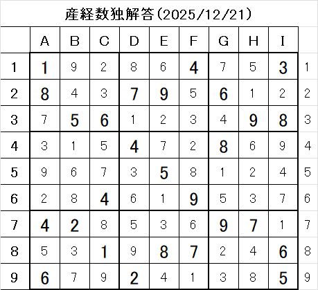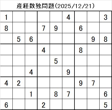 産経新聞 数独 解答 2025年12月21日(日)初心者向けの問題と答、やさしい解き方のポイント