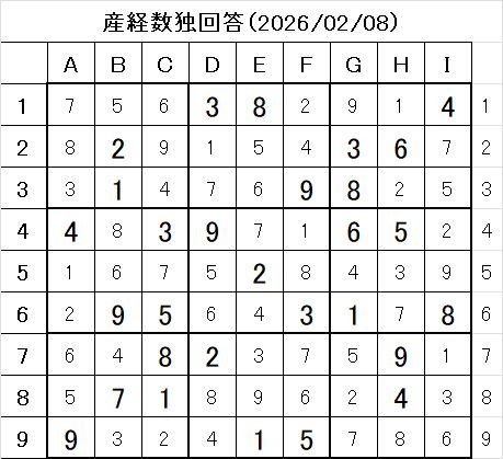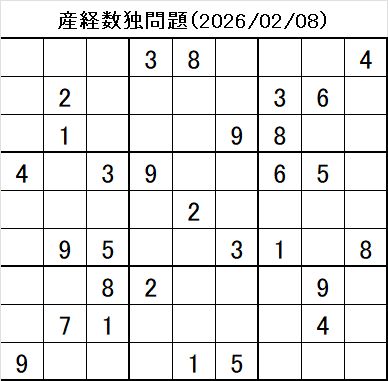 - 問題画像:産経新聞 数独 2026/2/8 問題