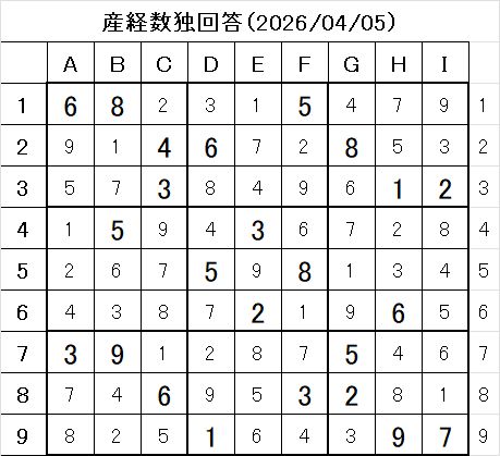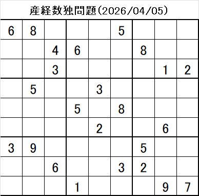 - 問題画像:産経新聞 数独 2026/4/5 問題