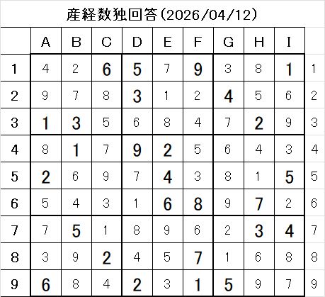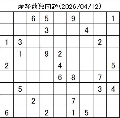 - 問題画像:産経新聞 数独 2026/4/12 問題