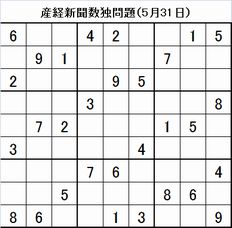数独回答ブログ! 産経新聞5月31日掲載分です!!