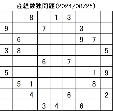数独問題と回答(産経新聞2024年9月29日掲載分)