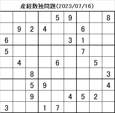 数独問題と回答(産経新聞2021年3月28日掲載分)