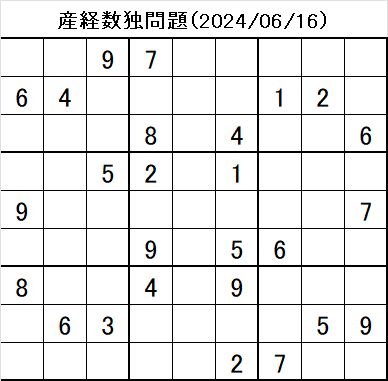 数独問題と回答(産経新聞2025年9月21日掲載分)