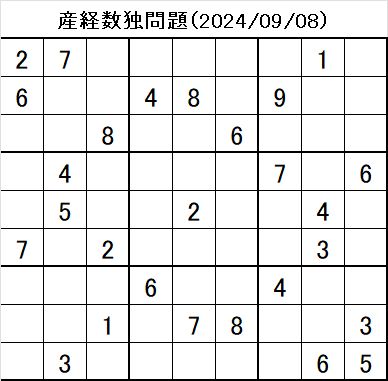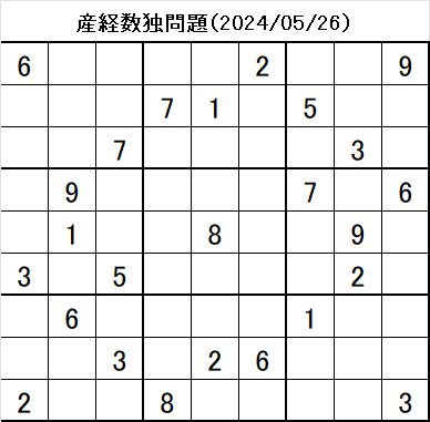 数独問題と回答(産経新聞2024年5月19日掲載分)